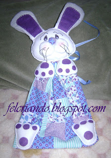 Fiz três coelhinhos: um para meus pais e irmãos que ainda moram com eles; um para minha irmã mais experiente (kkk) que é casada e tem três filhos e o terceiro para a caçula das mulheres que é casada e tem um pequeno.